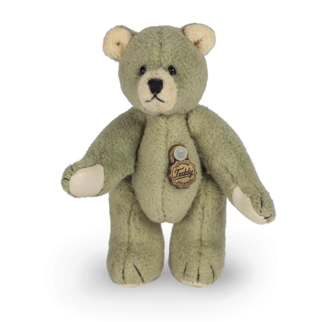 Die wunderschöne Farbe des Bärenfells wirkt sehr warm und beruhigend. Seine Körperhaltung drückt freundliche und spielerische Absichten aus. Unser Teddy salbei 6 cm ist ein kleiner, aber feiner Vertreter toller Produkte von Teddy Hermann.